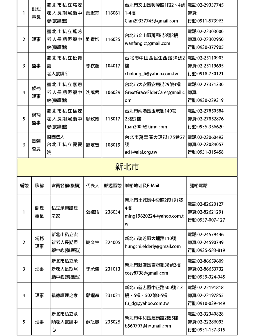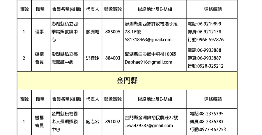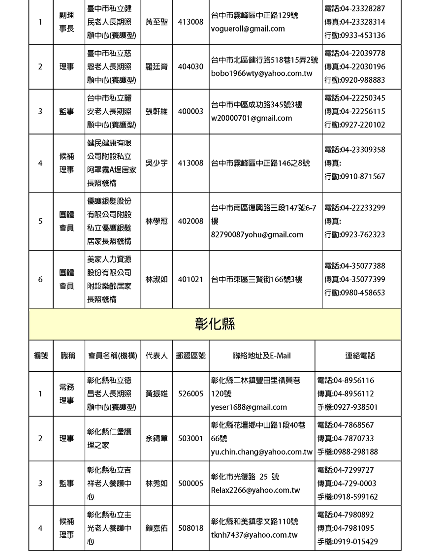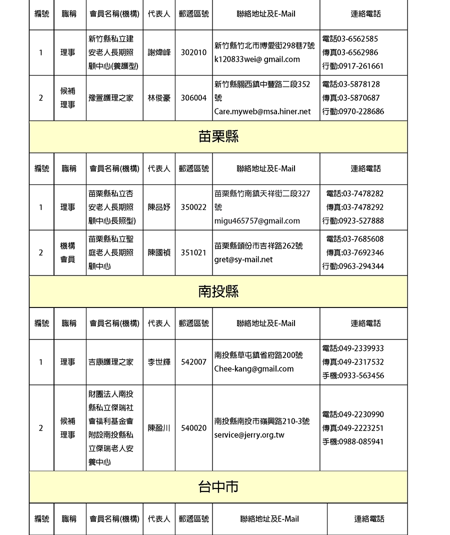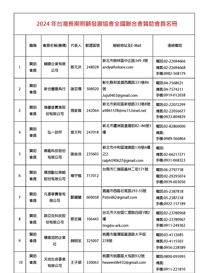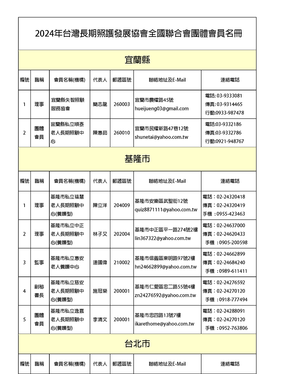 2024年台灣長期照護發展協會全國聯合會團體會員名冊
