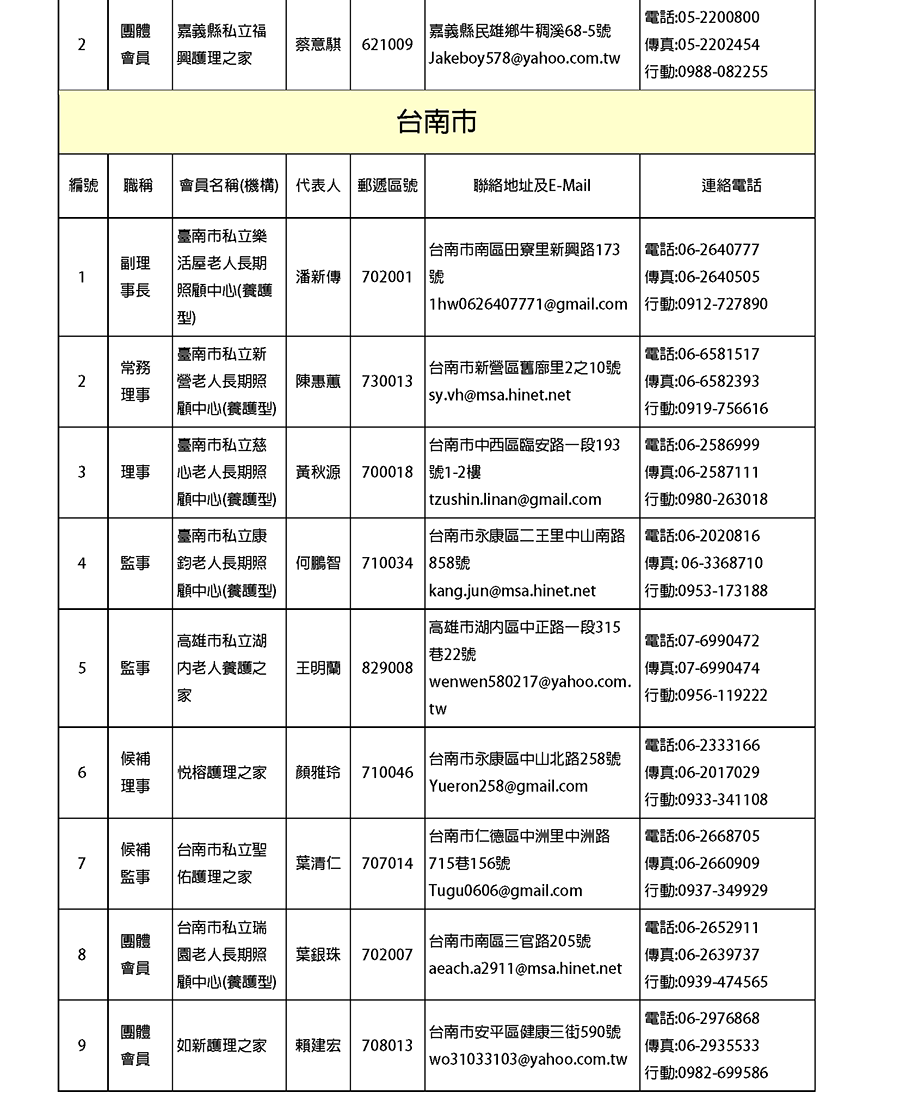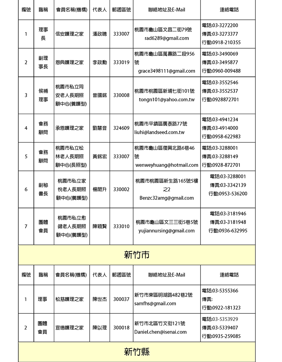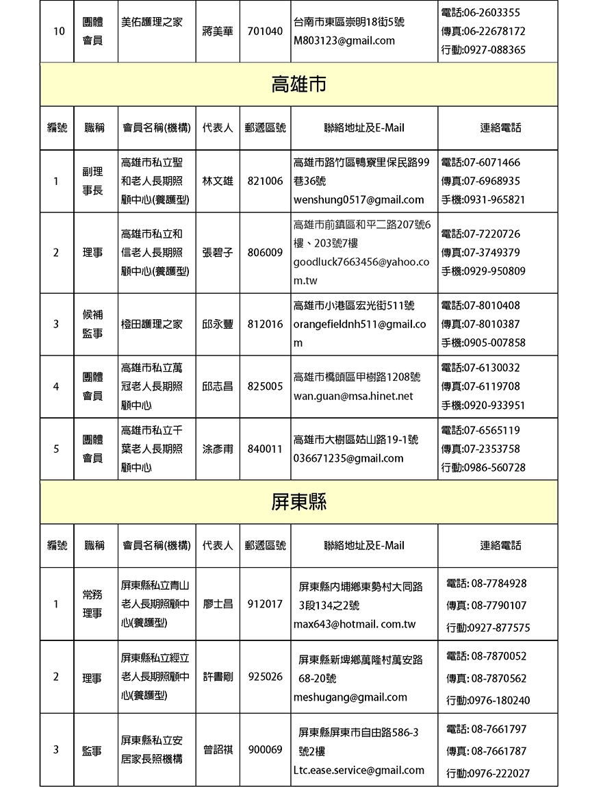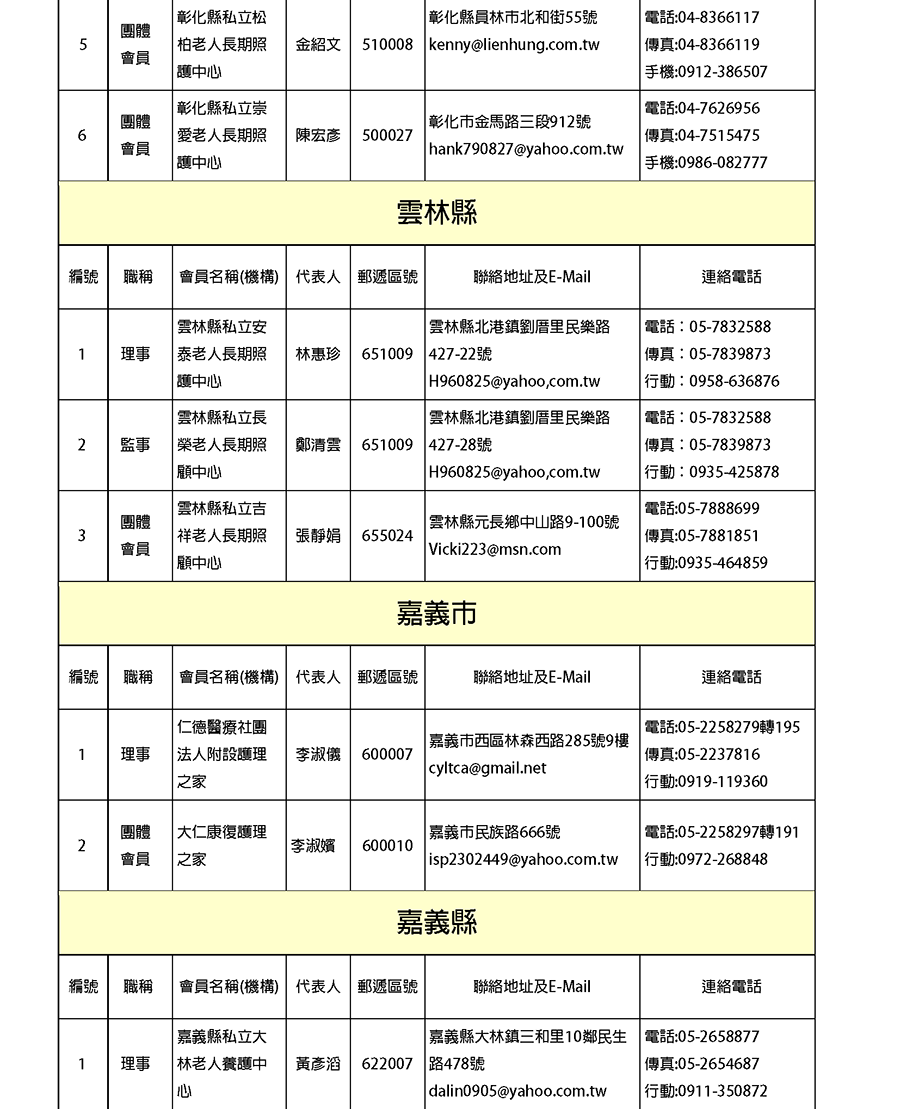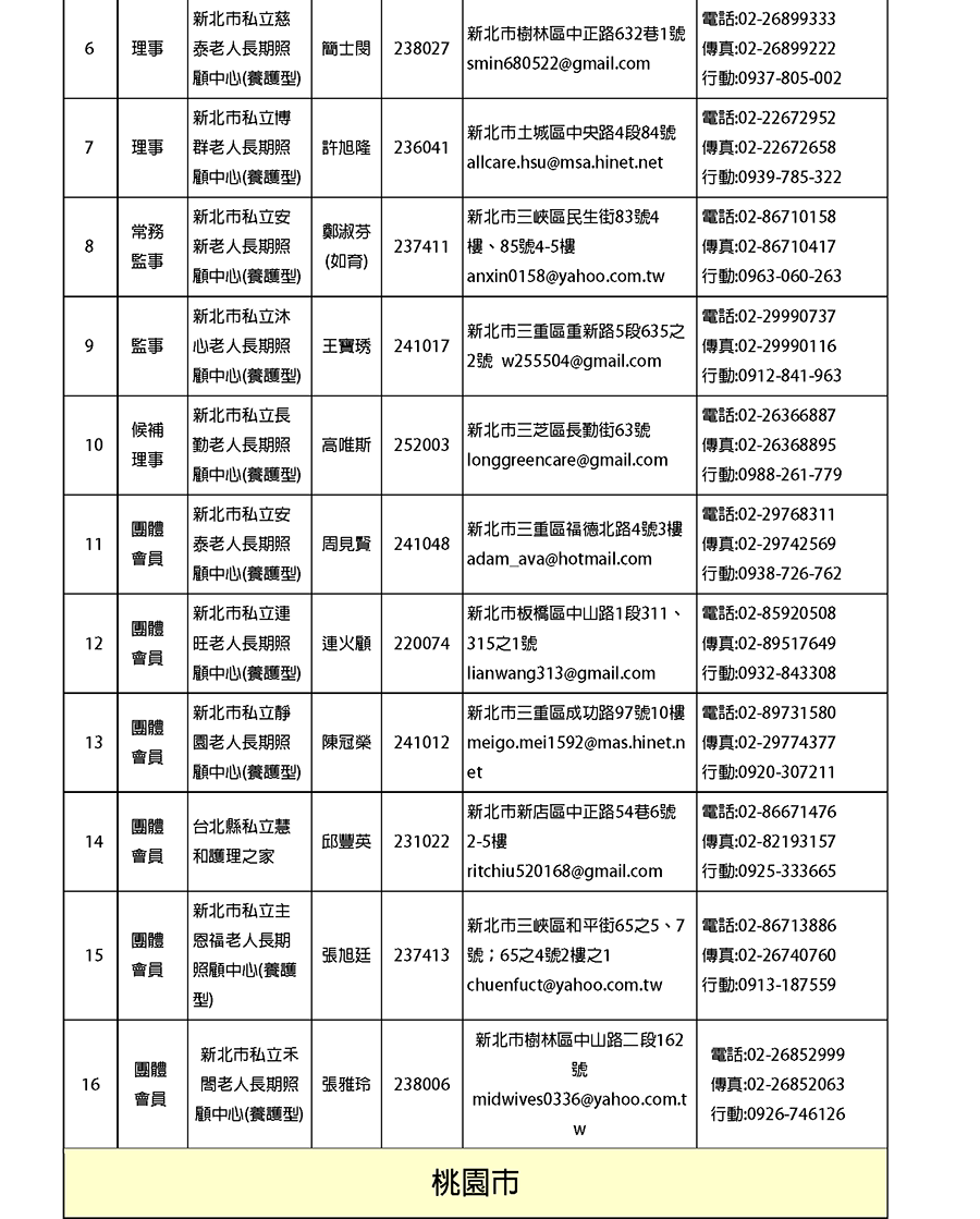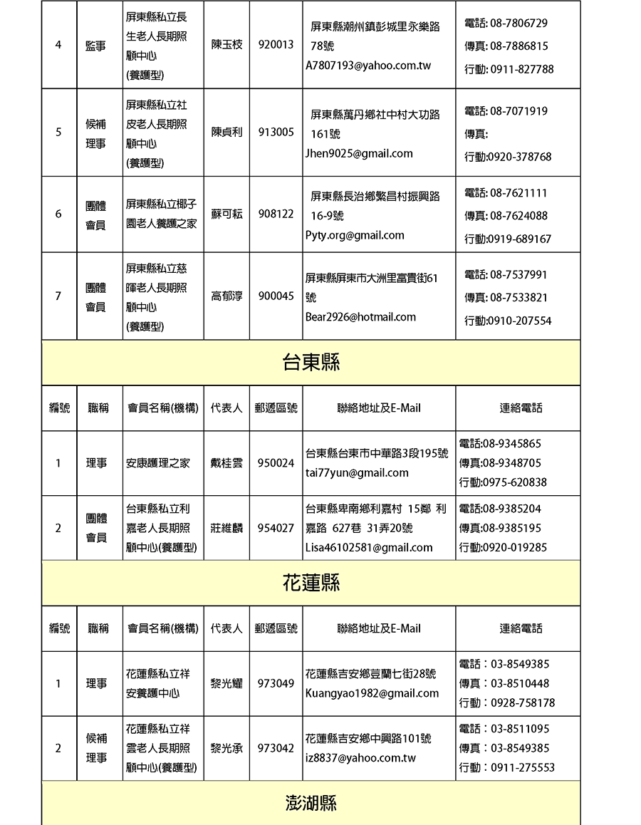 2024年台灣長期照護發展協會全國聯合會團體會員名冊